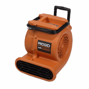 The Portable Air Mover from Rigid is a high-speed blower designed to move air for drying floors, carpets or rooms after cleaning or water exposure. It has multiple speed settings and a handle for transport.