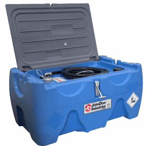 The 40-Gallon Low-Profile DEF Carry Tank from JohnDow Industries is a portable tank for storing and dispensing diesel exhaust fluid. It has a low-profile design, a wide fill opening and a spout for controlled pouring.