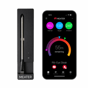 The MEATER SE from MEATER is a single wireless smart meat thermometer. It tracks internal meat temperature and ambient cooking conditions, sending data via Bluetooth to a smartphone app. The probe is fully wireless for use in ovens, grills or smokers. Photo Courtesy of Apption Labs.