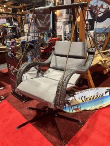 The Low Country Lounger is SoCo Swings signature wicker rattan with curved arms and cushion support. The synthetic wicker rattan is the most weather-resistant product we offer. The cushion is made up of two layers of 600×600 Denier UV-treated nylon, double-stitched at the seams and resistant to mold and mildew. The Low Country is complete with ½-inch triple-braided polyethylene ropes that make it strong and very resistant to dry rot. It comes complete with a hardware kit to hang from a patio or from one of the company’s frames. Retails for $754.